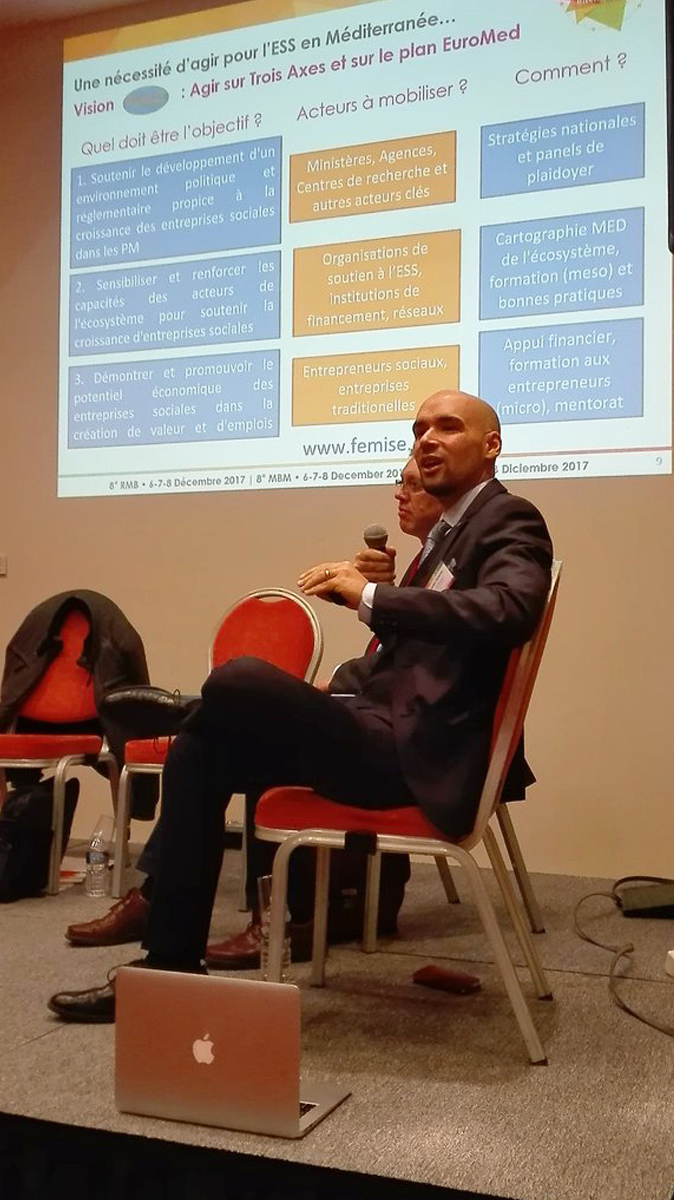 Cependant, de manière générale, l’Etat n’appui pas assez l’ESS au Sud-Méditerranéen et ne crée pas les conditions nécessaires à sa pérennité. Le Dr. Tsakas a souligné qu’au cœur de la dynamique ESS se trouve la question du financement des projets et de la mobilisation des ressources. Les résultats préliminaires indiquent que le financement des entreprises ESS doit être au cœur des préoccupations des autorités locales, nationales mais aussi sur le plan EuroMed. Une « finance ESS » permettant un accès à la liquidité et au crédit en lien avec des objectifs coordonnés partagés est nécessaire. Il serait opportun que chacun des PM appuie, notamment en instaurant un cadre réglementaire propice, l’émergence de banques « sociales », « participatives » ou « éthiques » pour orienter des fonds vers des projets utiles, durables et inclusifs. Il serait également judicieux d’encourager le financement de l’ESS par les institutions de microfinance qui ont un maillage territorial développé. Il serait également possible d’innover en proposant des modes des contrats de financement d’impact social (Social Impact Bonds – SIB), titres très populaires dans le monde anglo-saxon, qui permettent de faire financer des programmes sociaux (commerce équitable, tourisme social, accès à la culture etc.) par des investisseurs privés. Le rapport EuroMed 2018 proposera des pistes d’outils qui peuvent être appuyés par tous les acteurs locaux, nationaux et internationaux et qui permettent de répondre aux obstacles de financement identifiés.