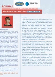 Le dix-septième COVID-19 MED BRIEF, intitulé « Transition énergétique, durabilité et politiques du marché du travail : Implications et recommandations pour les pays du sud de la Méditerranée», par Stella Tsani, Professeure adjointe au département d’économie de l’université d’Ioannina, Grèce, est disponible ( en anglais) en cliquant ici