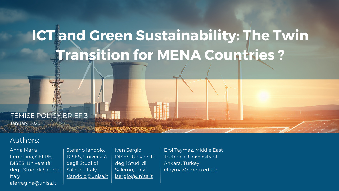 Ce Policy Brief fait partie de la série de Policy Briefs du FEMISE et est basé sur le document de conférence du FEMISE no. 5 intitulé : «ICT as a Driver for Green Economic Growth in the MENA Area» par les mêmes auteurs.