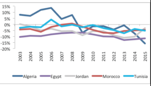 Dr. Zouhair Elkadhi (Tunisian Institute for Competitiveness and Quantitative Studies) begins by recalling that the Tunisian economy has been on a slow down since the revolution in 2011, which was coupled with the global economic slowdown and the war in the neighboring country Libya. He points to the growth problem, a previous trade deficit which has worsened, an internal demand problem, and the fall of non-market sectors such as the tourism sector following the attacks, a drop in private investment and exports, and rising unemployment. Demand-side stimulus policies have increased the tax burden. He added that the government is taking measure for the deficit to stay below 5% versus 6% today.