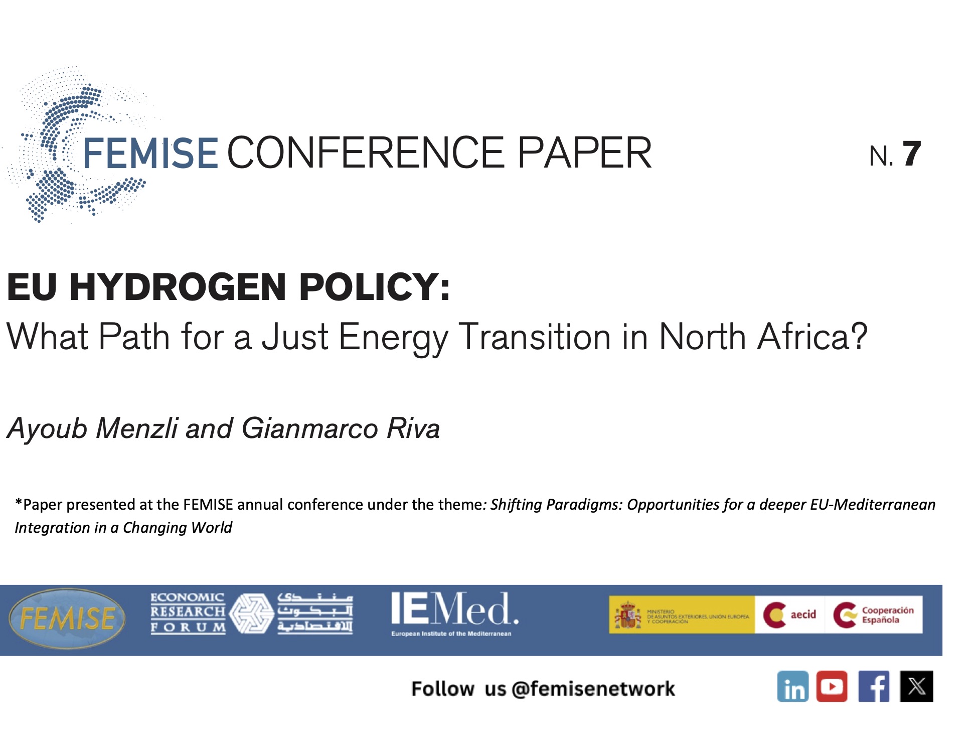 With the European Green Deal, the EU has embarked on an journey to become climate-neutral by 2050. As a pivotal component of this strategy, green hydrogen is set to reach 10 million tonnes of production-import by 2030: an ambitious target that is difficult to achieve without contributions from third countries. To this end, the EU has increasingly engaged with its North African partners, which represent a great potential for cooperation opportunities thanks to their abundance in renewable energy resources, notably solar and wind. The convergence with the EU’s demand for clean energy thus offers a compelling backdrop for bilateral collaboration, positioning North African as a major hydrogen partner. Despite many positives that a hydrogen market in North Africa can have, its development process is not risk-free. Challenges range from energy poverty, water scarcity, and land-use conflicts, to socio-political factors, such as poor governance structures, insufficient stakeholder engagement, and the absence of clear policy frameworks. These limitations suggest that further research is needed in the study of EU hydrogen policy in North Africa. It is against this backdrop that our work wants to offer a critical inquiry on the matter, highlighting its multiple facets and interdisciplinary dimension. By exploring the concept of energy justice as an analytical perspective, we evaluate EU hydrogen policy in Algeria, Morocco, Egypt, and Tunisia. The intent is to shed a light on its opportunities and risks, expose instances of energy injustices, and put forth suggestions to alleviate them. Hopefully, this would enhance the effectiveness of EU hydrogen policy in fostering a more equitable and just energy transition in these regions.