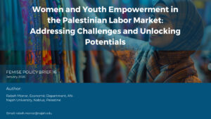 In this context, strengthening women’s and youth’s economic empowerment is not only a social imperative but also a critical condition for sustainable growth and resilience in Palestine. Addressing legal, financial, institutional, and cultural barriers is essential to unlocking their potential as key drivers of economic development.