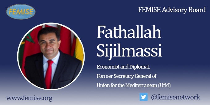 From 2012 to 2018, Fathallah Sijilmassi is Secretary General of the Union for the Mediterranean (UfM), an international organization, with headquarters in Barcelona (Spain), bringing together 43 countries of the Euro-Mediterranean region and whose vocation is to promote regional dialogue and cooperation.
