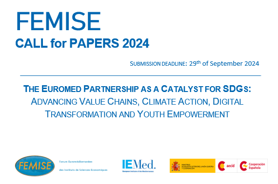 FEMISE is calling for researchers to submit their concept notes towards its 2024 Annual Conference under the theme “The Euromed Partnership as a Catalyst for SDGs: Advancing Value Chains, Climate Action, Digital Transformation, and Youth Empowerment”, addressing one or more of the following four topics: