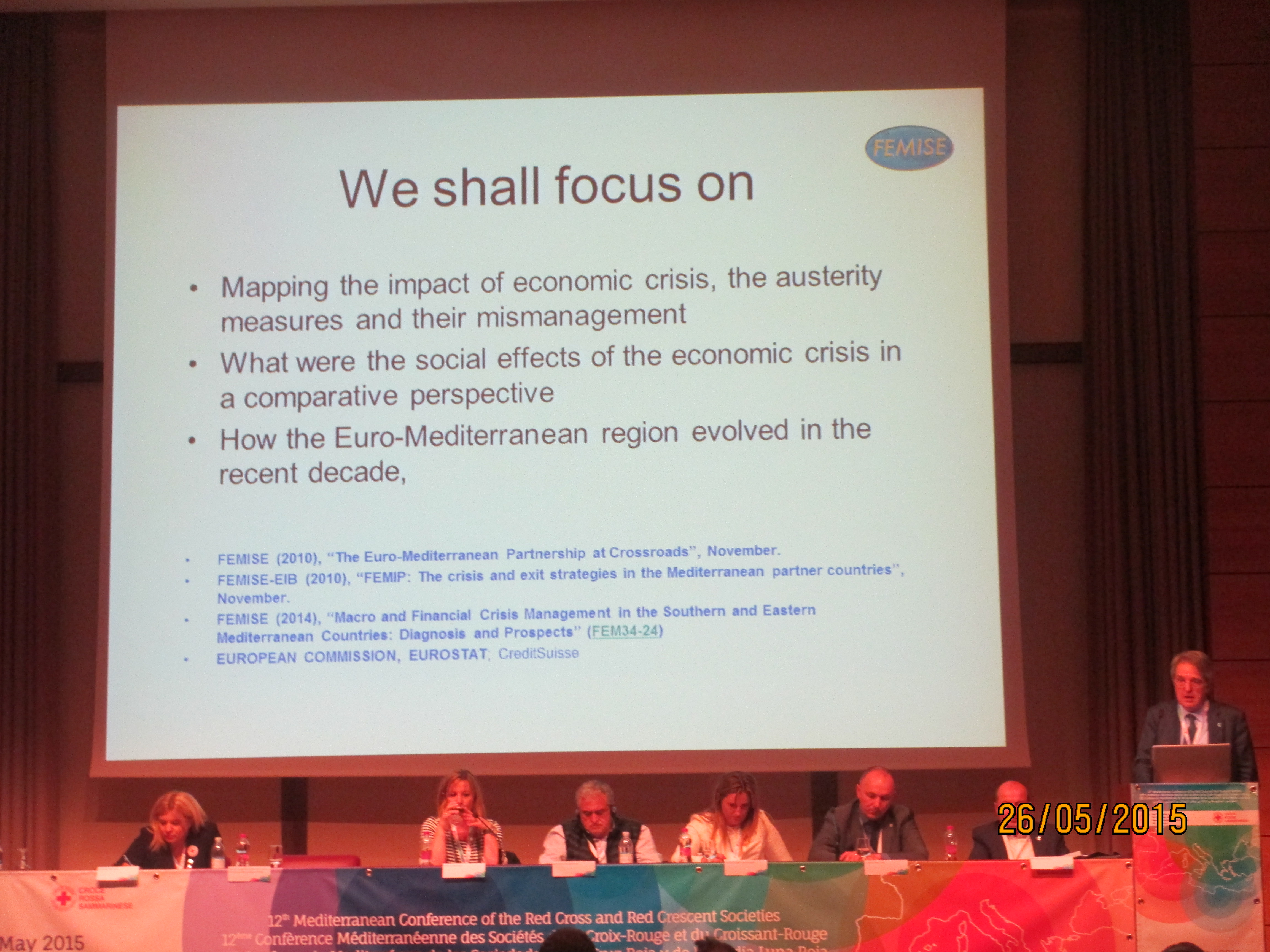 *Between 25th and the 28th of May 2015 the Republic of San Marino was the host of the 12th Mediterranean Conference of the Red Cross and Red Crescent Societies (RCRC) in which FEMISE was invited to provide a speech about the social effect of the crisis on the EU-Med region.