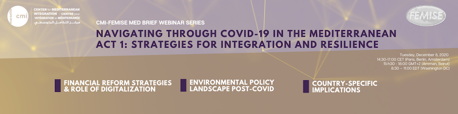 FEMISE and The Center for Mediterranean Integration (CMI) are organizing a webinar on “Navigating through COVID-19 in the Mediterranean“, on Tuesday 8th December 2020.