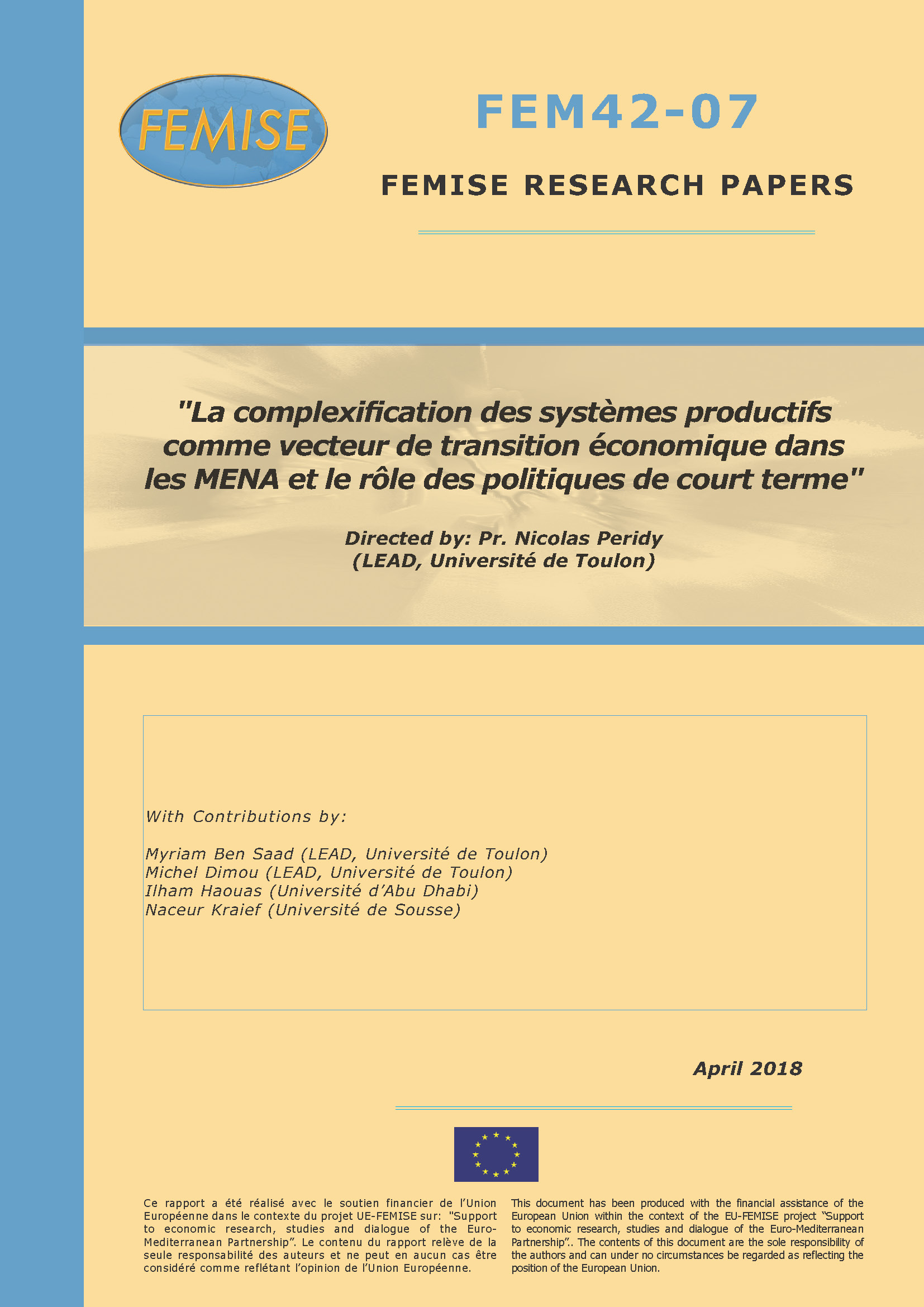 FEMISE a le plaisir d’annoncer la publication de son projet de recherche FEM42-07, « La complexification des systèmes productifs comme vecteur de transition économique dans les MENA et le rôle des politiques de court terme”, coordonné par Pr. Nicolas Peridy (LEAD, Université de Toulon).