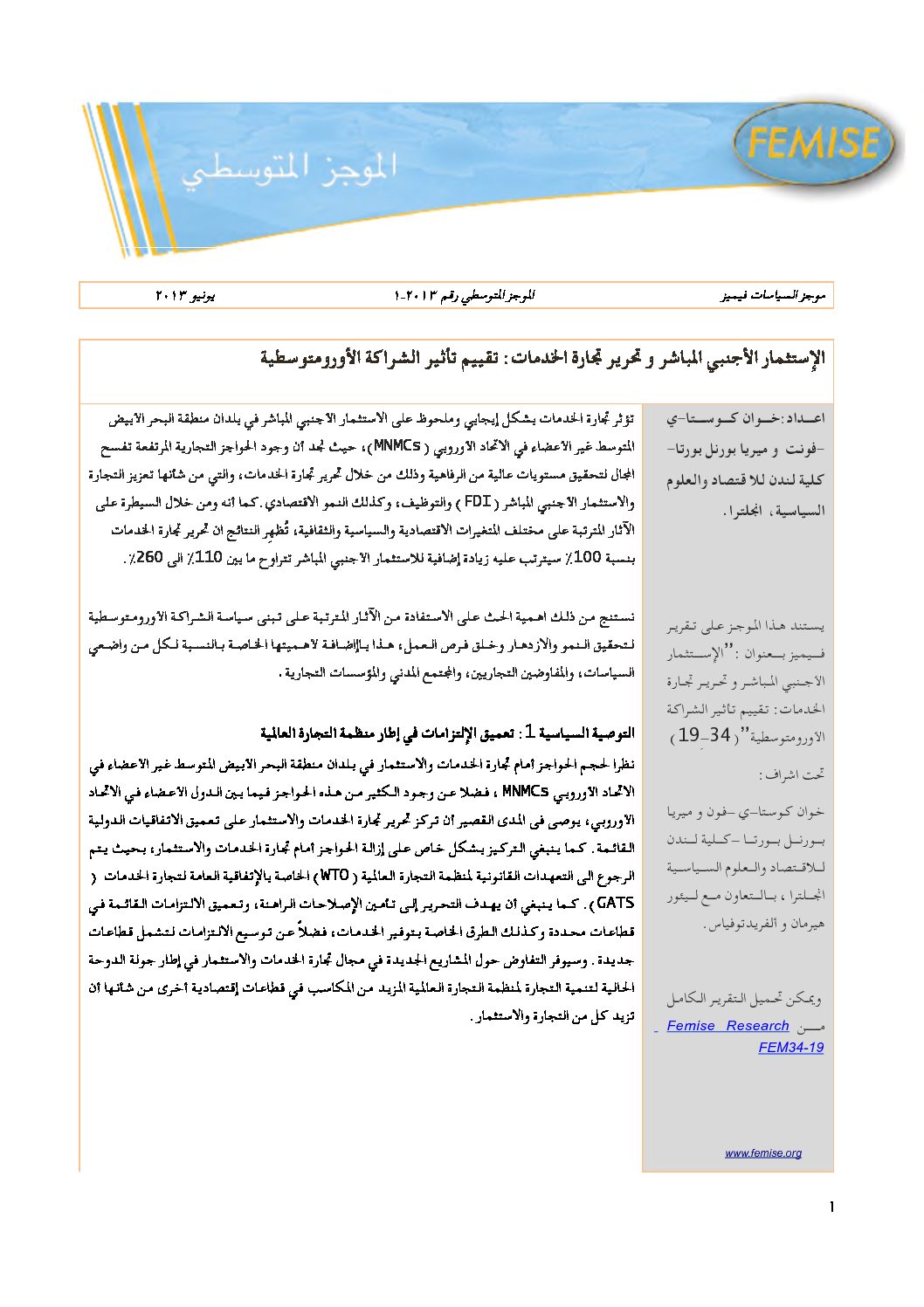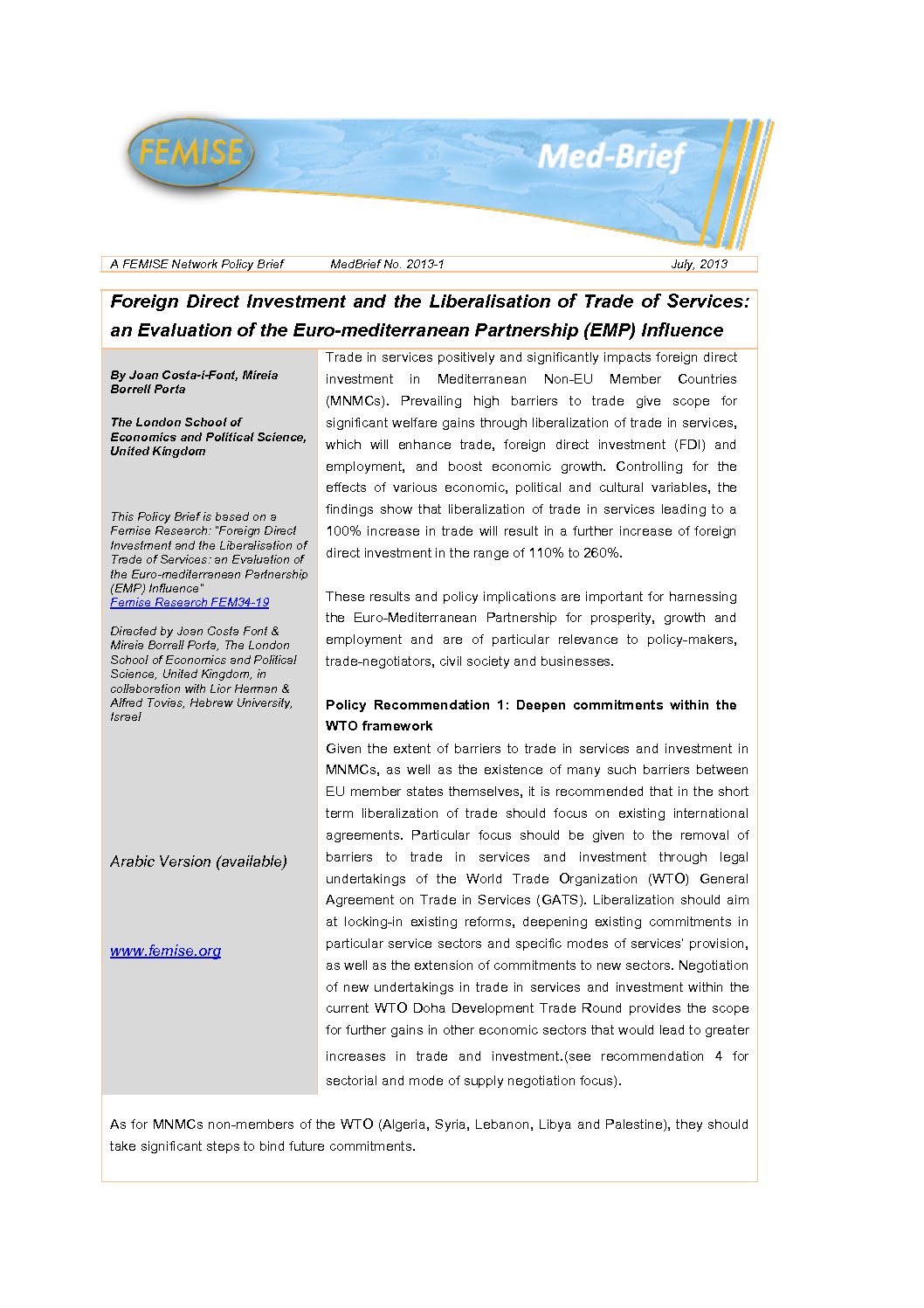 Femise > Publications > Policy brief > MedBrief 1 : Foreign Direct Investment and the Liberalisation of Trade of Services