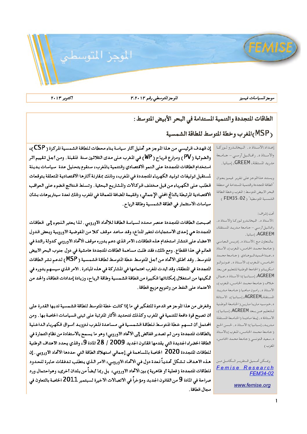 Femise > Publications > Policy brief > MedBrief 3 : Renewable Energies And Sustainable Development In The Mediterranean