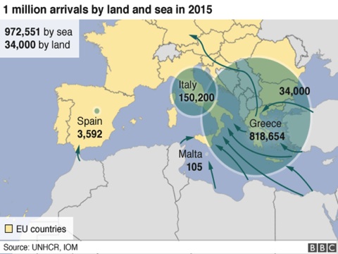Traverser la Méditerranée devient un risque sans précédent : 3 200 hommes, femmes et enfants ont péri en mer en tentant de rejoindre les côtes en 2014. Cette même année, 219 000 migrants sont parvenus à rejoindre l’Europe sains et saufs. Ce flot d’immigrés connaît une croissance exponentielle.En 2015, ils étaient plus d’un million dont 972 551 arrivés par la mer (818 654 en Grèce et 150 200 en Italie). Le nombre de personnes qui a péri en mer cette année est encore plus important. Pour les demandeurs d’asile, la Suède, l’Allemagne et la France arrivent en tête des destinations favorites.