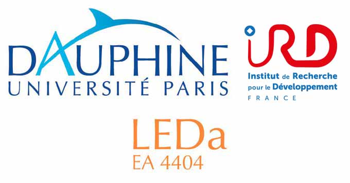 DIAL- UMR LEDa – Paris Dauphine, France :  Le LEDa, Laboratoire d’Economie de Dauphine,  est une unité de recherche créée en 2009. Il regroupe l’ensemble des enseignants-chercheurs économistes de l’Université Paris Dauphine ainsi que des chercheurs IRD et CNRS. Ses recherches orientées dans le sens de l’aide à la décision concernent plusieurs enjeux de société de large spectre : santé et vieillissement, développement et mobilités, politiques macroéconomiques, environnement et climat ainsi que la finance.