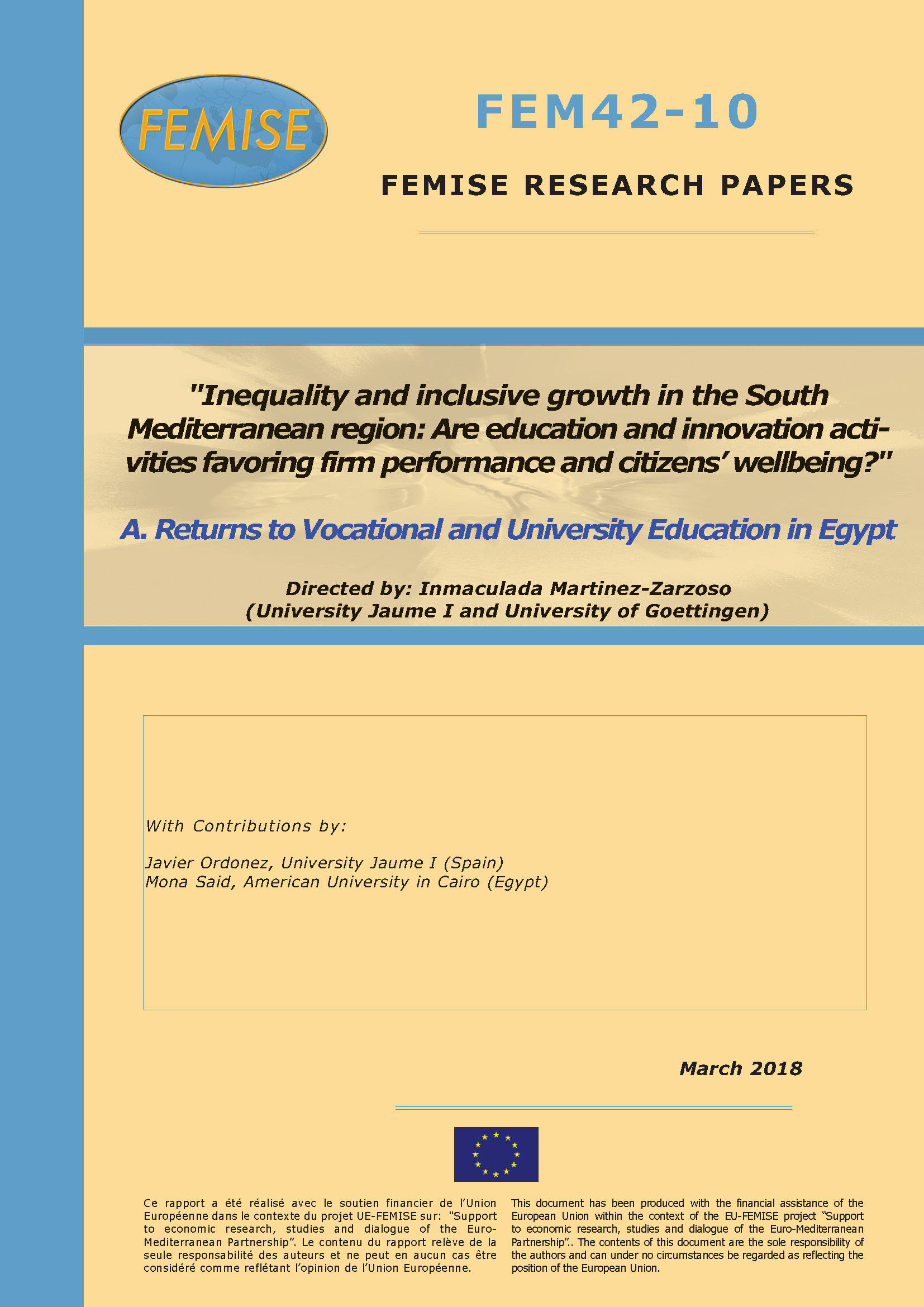 FEMISE a le plaisir d’annoncer la publication de son projet de recherche FEM42-10, «Inégalité et croissance inclusive dans la région sud méditerranéenne: les activités d’éducation et d’innovation favorisent-elles la performance des entreprises et le bien-être des citoyens?”